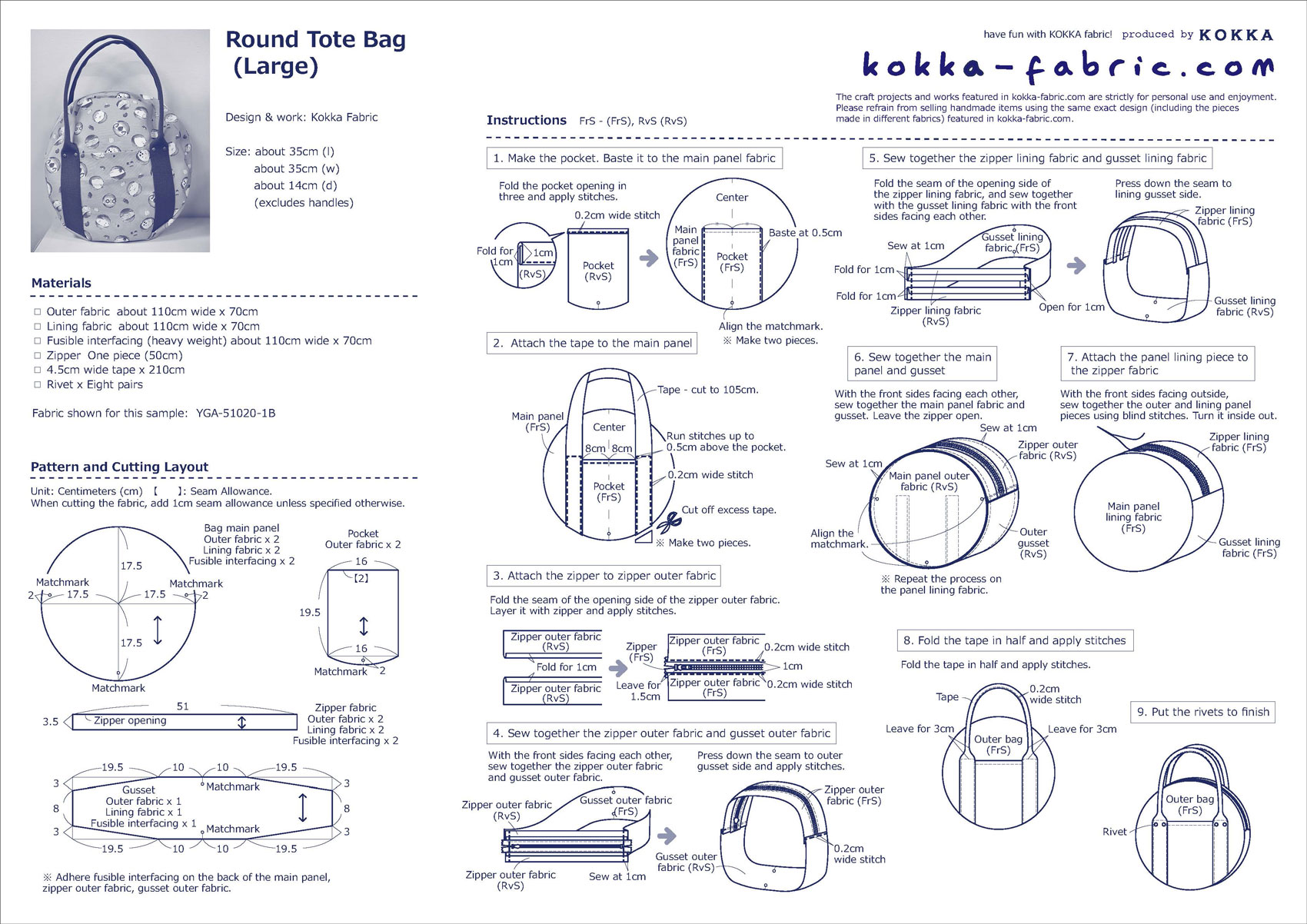 Perfect For A Quick Outing♪- Round Tote Bag – Sewing Instructions