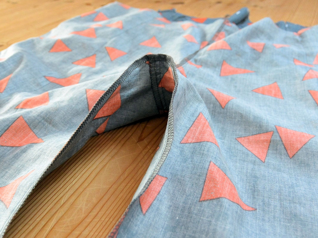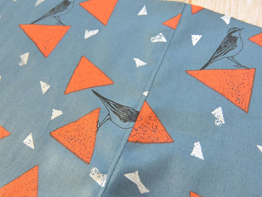 Different from echino’s usual cotton linen fabric, the base color for this sateen is unique and the colors come out beautifully. As it is not thick, it may not necessarily be suitable for making a pair of pants, yet I took advantage of the thinner texture to add movement.
