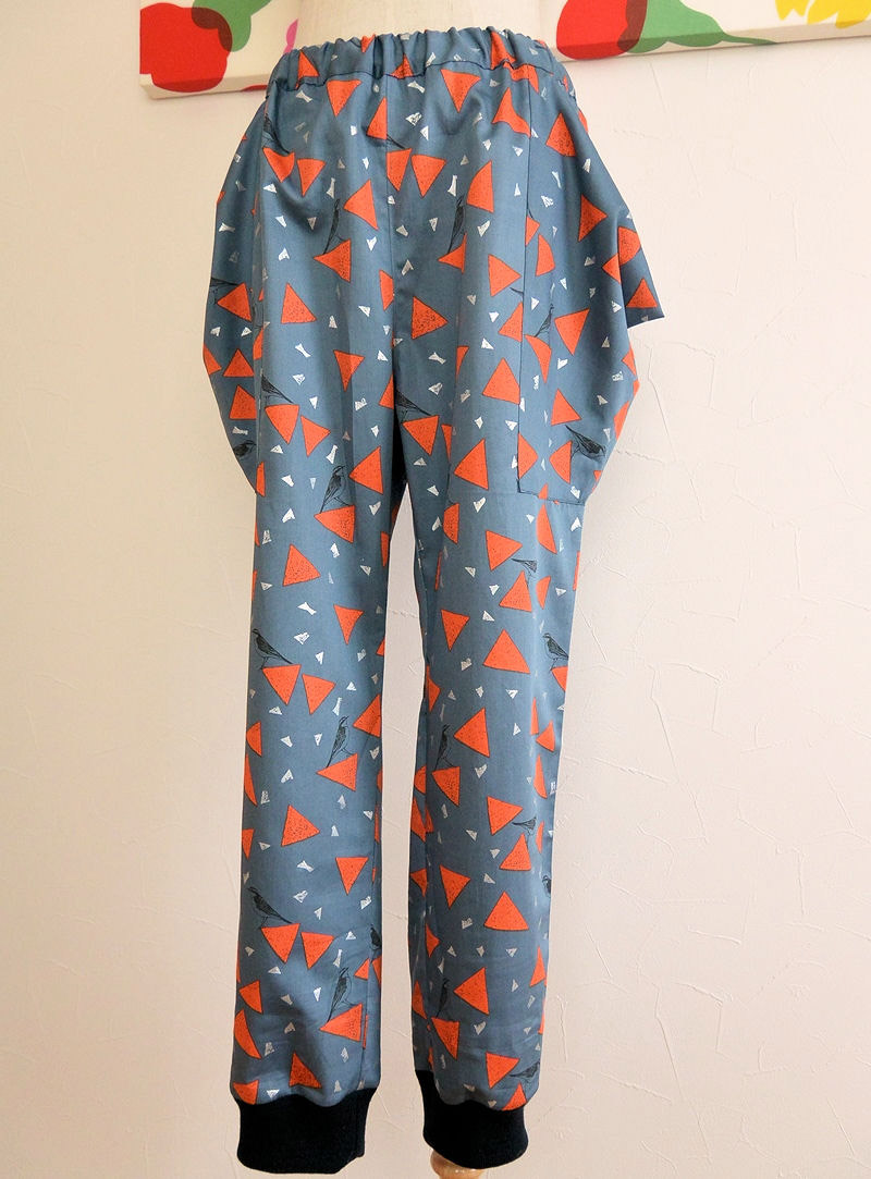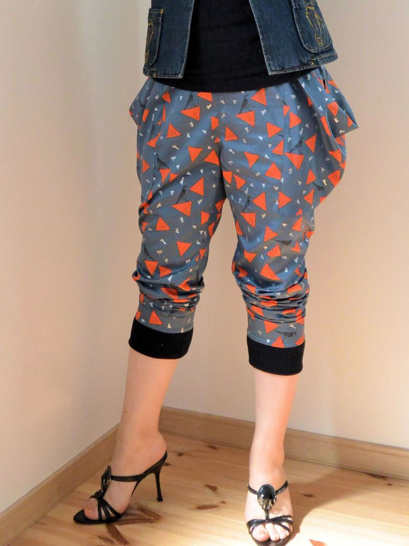 In order to make it easy to make, the pockets are attached outside of the pants. Though the pants have a soft sarouel design, with these pockets, they look more like proper sarouel pants.