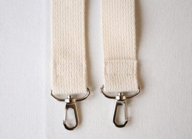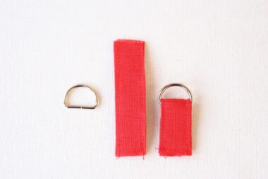 Insert the tape through swivel lobster clasp. Fold in three and sew.