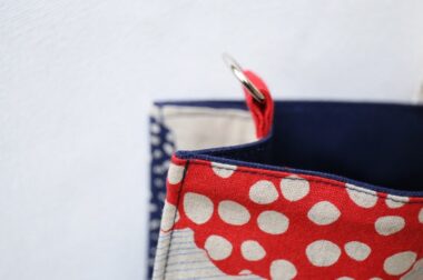 The width is just right to show the flowers and border in a balanced way. I wanted to take advantage of the crispness of the pattern, so the top stitches are applied in the corners as an accent to give it a solid paper bag look. Since it is a large bag, a detachable shoulder strap is incorporated to make it easy to carry even when it gets heavy.