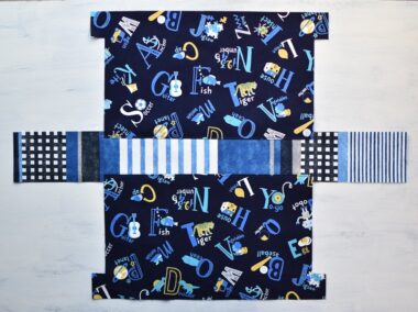 When I heard that it was a super water-repellent fabric, I thought it would be thick and tough, but it was sewing friendly, just like traditional oxford fabric. The alphabet pattern is oriented in different directions, so it was easy to cut without worrying about orientations. The fabric used for the side gusset has multi-sized stripes and plaids design, so you can use any portion of it. Taking advantage of its water-repellent nature, and with a quilt batting in between, I made a shoulder bag for children that is perfect for taking a game console with them on outings.