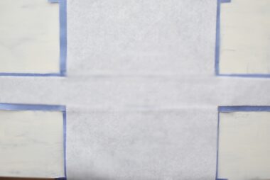 For both outer fabric and lining fabric, sew the side portion to make a square shape. Press down zthe seam to the bottom side.