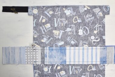 Place the zipper between the outer and lining fabrics and sew together, with the front sides facing each other.