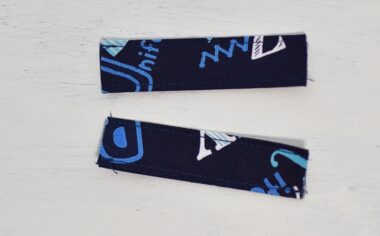 Fold the tab fabric in four and sew both long ends. Insert through D ring