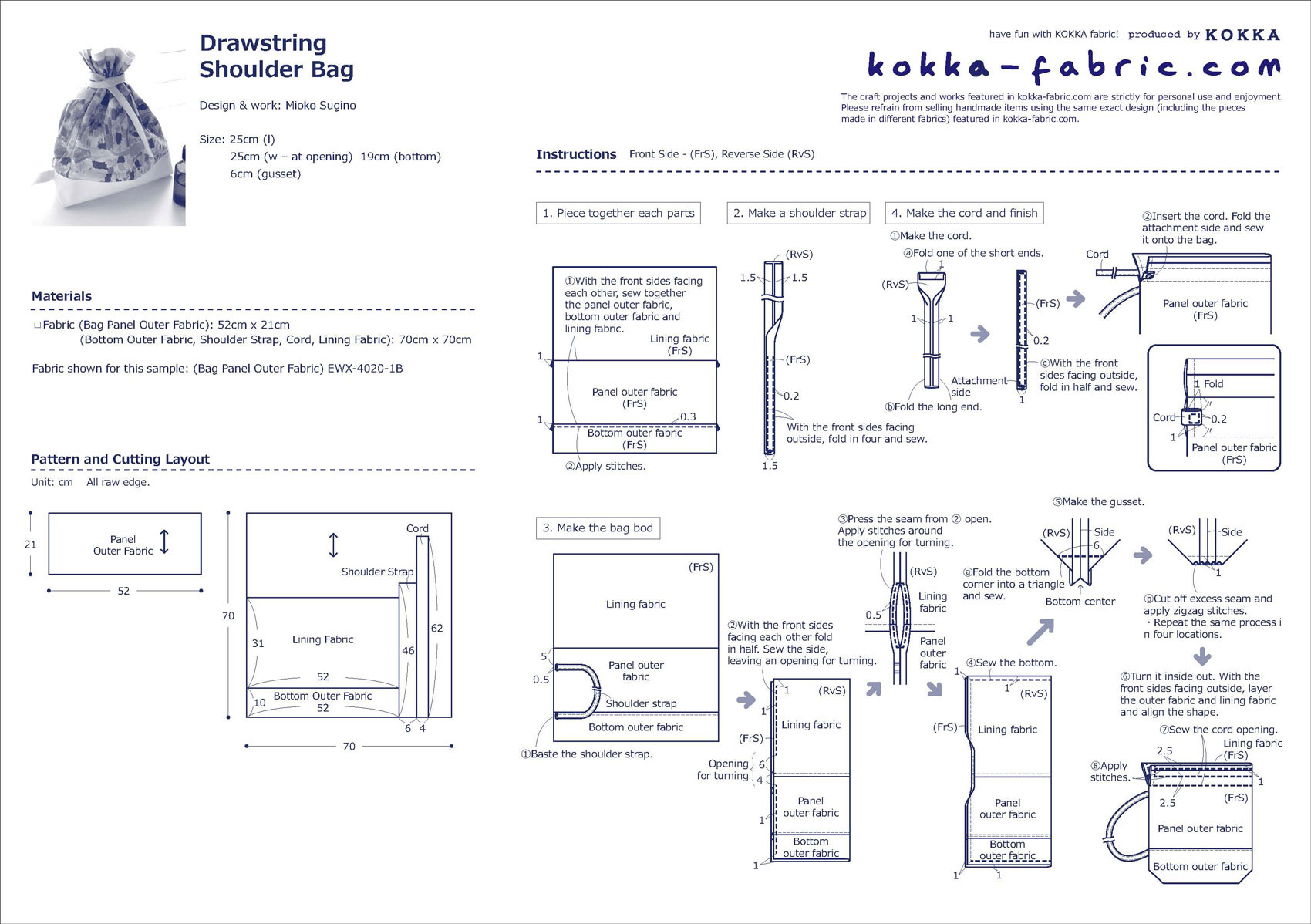 No Need For Metal Parts or Cords♪ – Drawstring Shoulder Bag – Sewing Instructions