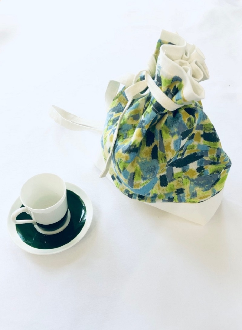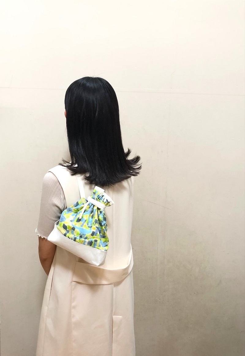 It is a fabric that looks like a refreshing and pleasant scenery is painted all across. The design is suitable for both small and large items. In order to take advantage of soft and smooth feel of the cotton linen viyella fabric, I created a drawstring bag.
