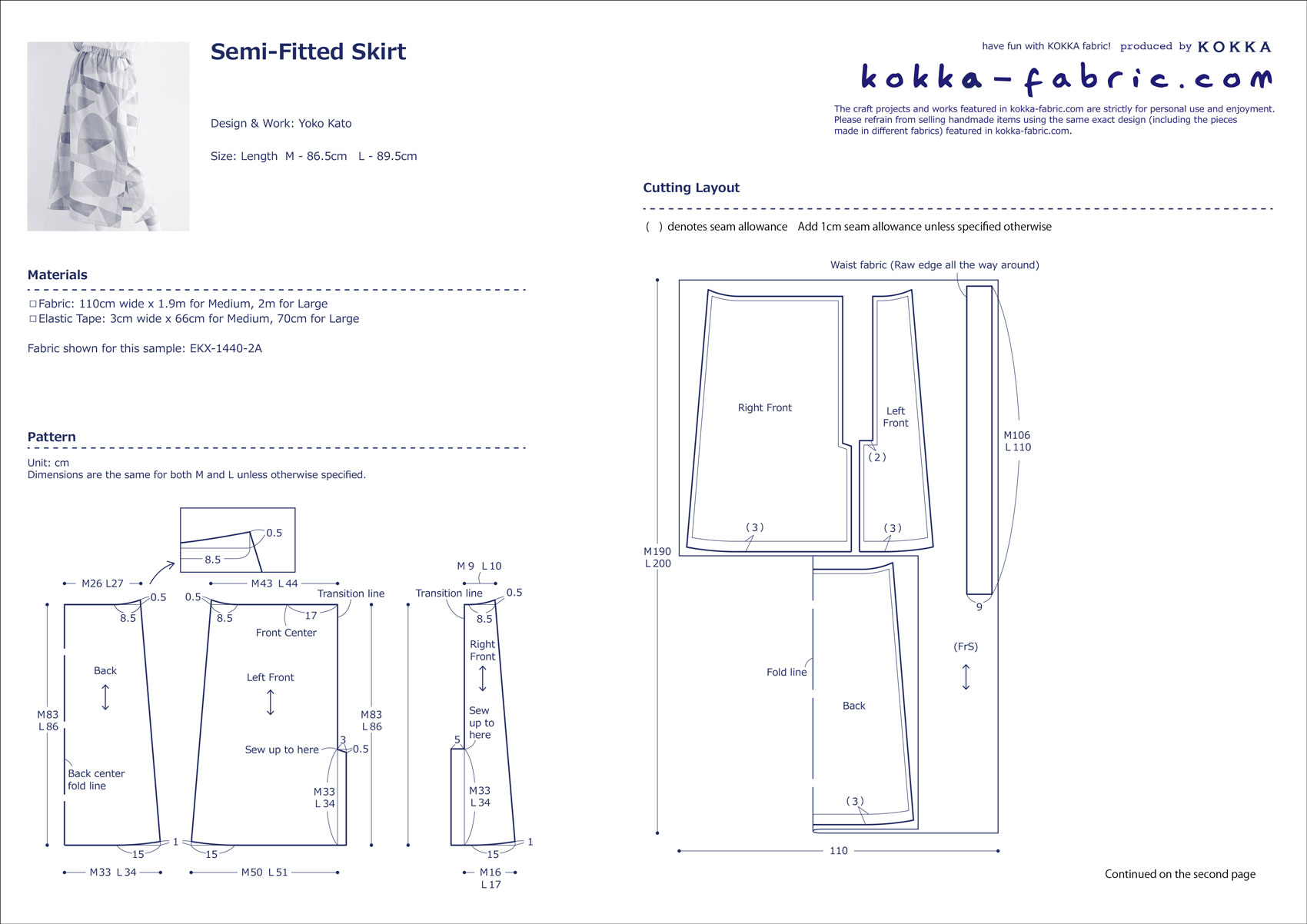 Fabric: 110cm wide x 1.9m for Medium, 2m for Large