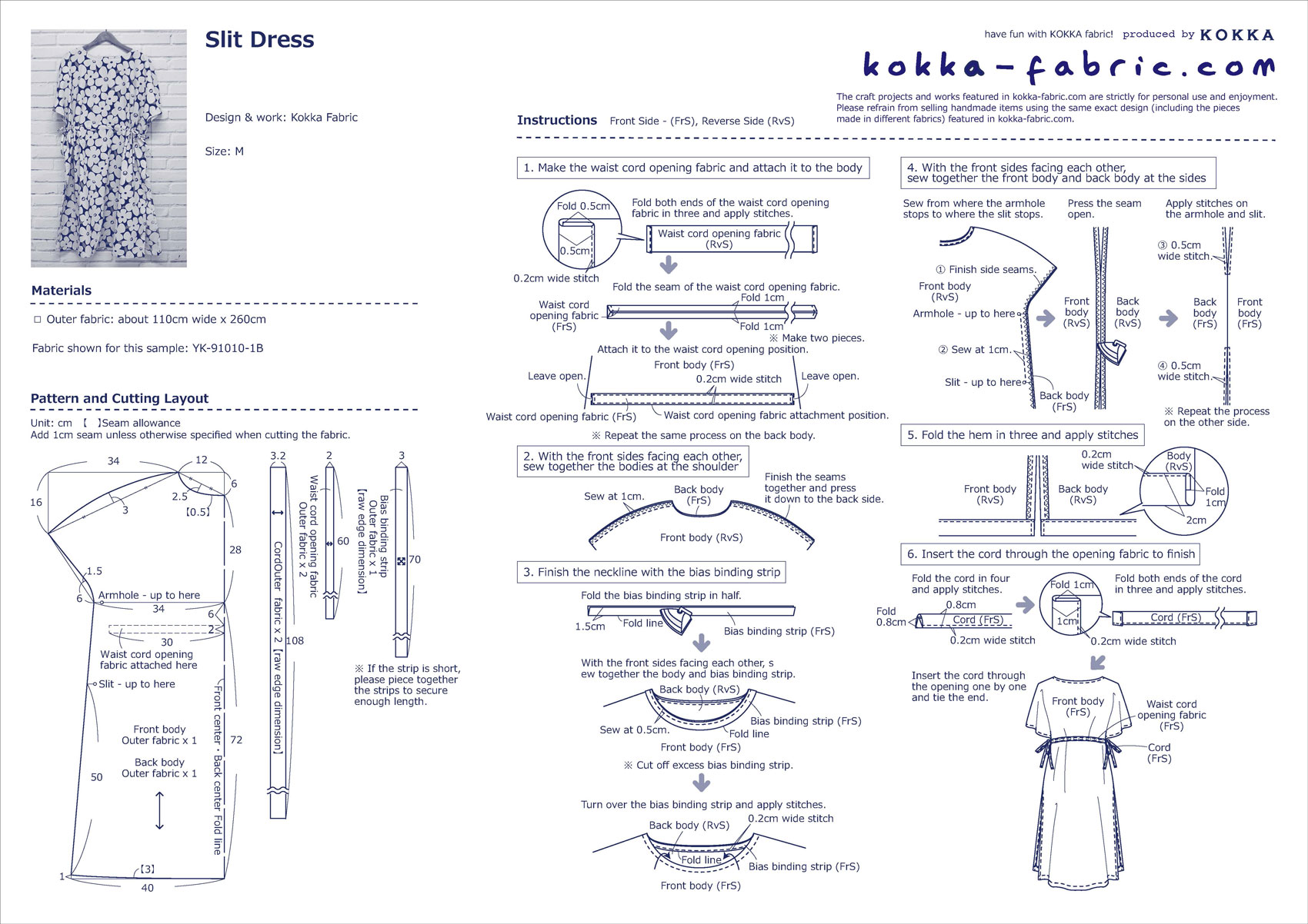 Accented with A Deep Slit and Waist Ribbon♪ – Slit Dress – Sewing Instructions