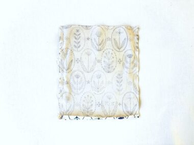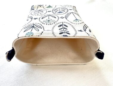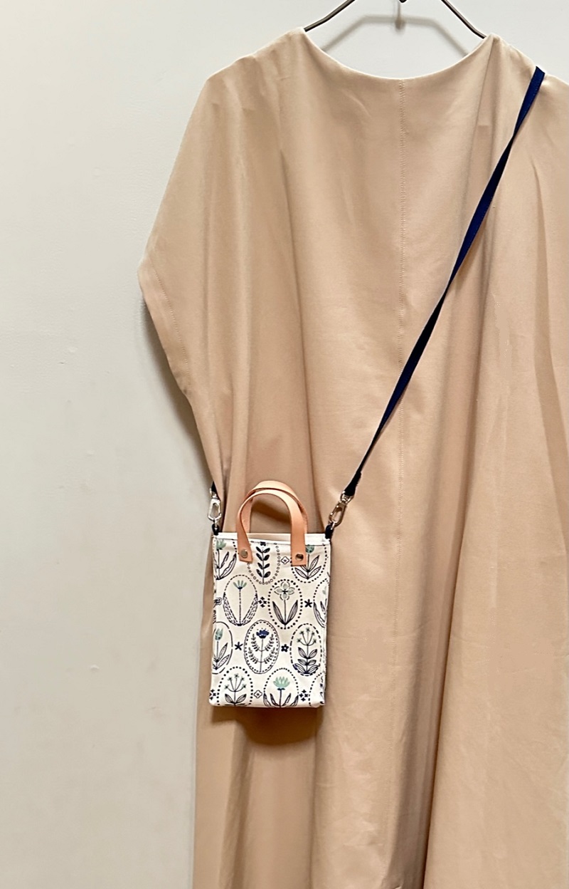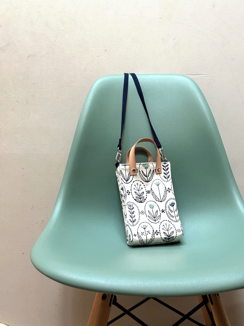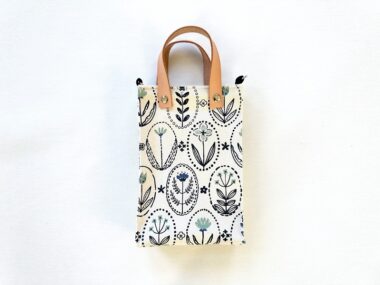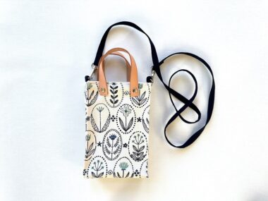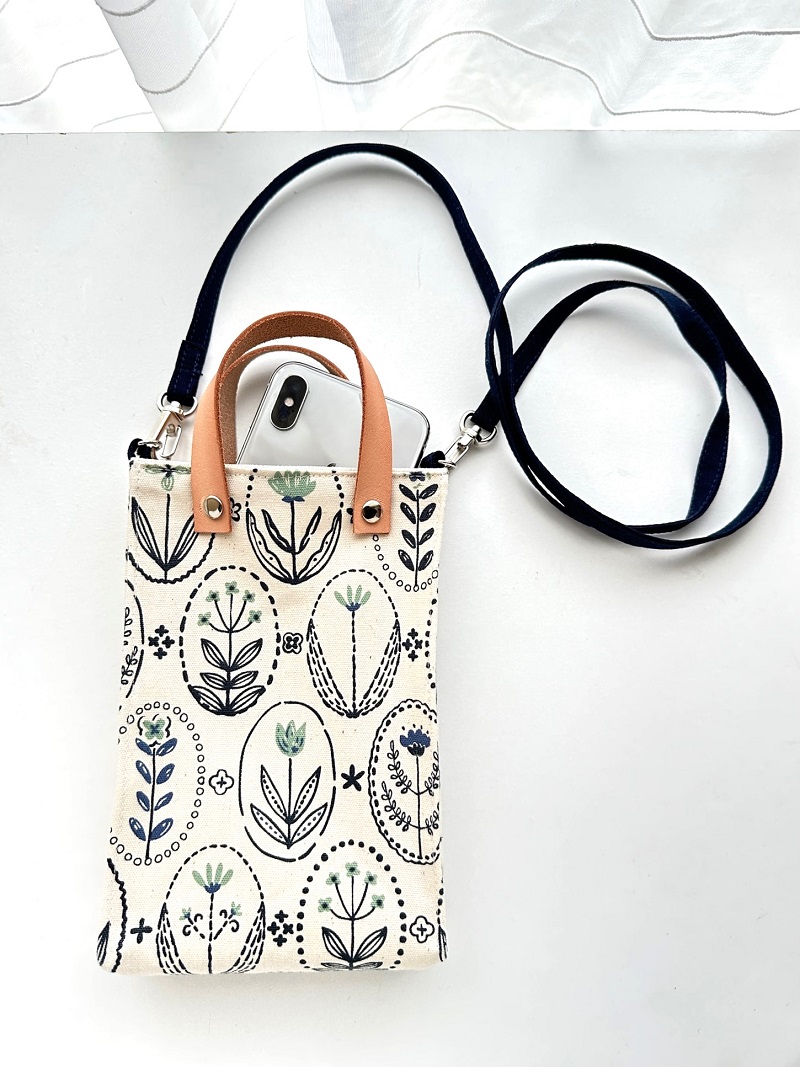 This cell phone purse, shaped like a paper bag, is very stylish. Once the strap is detached, it can be carried as a mini bag. The fabric used for this bag is from the “Linnea” series. It is cute with popular Scandinavian motifs in natural, dusty colors. The 100% cotton oxford has just the right thickness for making bags and is also perfect for school items.