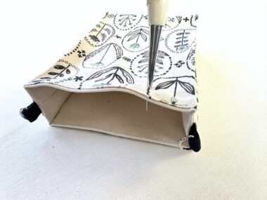 Insert the lining bag into the outer bag. Place the loop in between the center of the side and sew together.