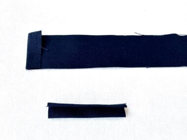 Fold both short ends of the strap for 1cm, then fold in four. Fold the loop in four.