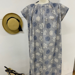 This is a smock blouse made of double gauze from mock twist yarn. The gathered neckline and cuffs with bias bound seams produce an airy atmosphere on this blouse. It looks refreshingly cool by the large dots pattern.