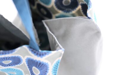 Let me share some tips to create clean bottom corners. As instructed, make a slit on the edge before you sew, hold the machine needle in the fabric to turn it 90 degrees, and align the fabrics you are about to sew before you start stitching. If you use the interfacing for the outer fabric, the bag becomes more solid. In that case, I recommend adding a hook at the opening so that you can close the top securely.