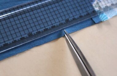 Fold the handle fabric in four and sew both ends. Make two pieces.