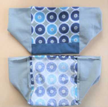 With the front sides facing each other, sew together the outer fabrics A and B. Repeat the same process to make the lining bag.