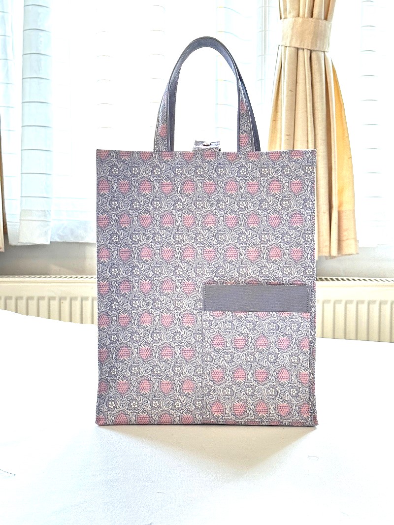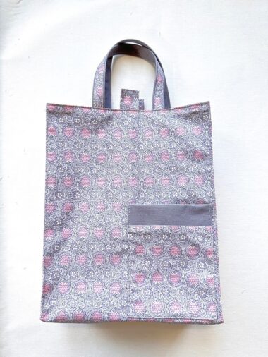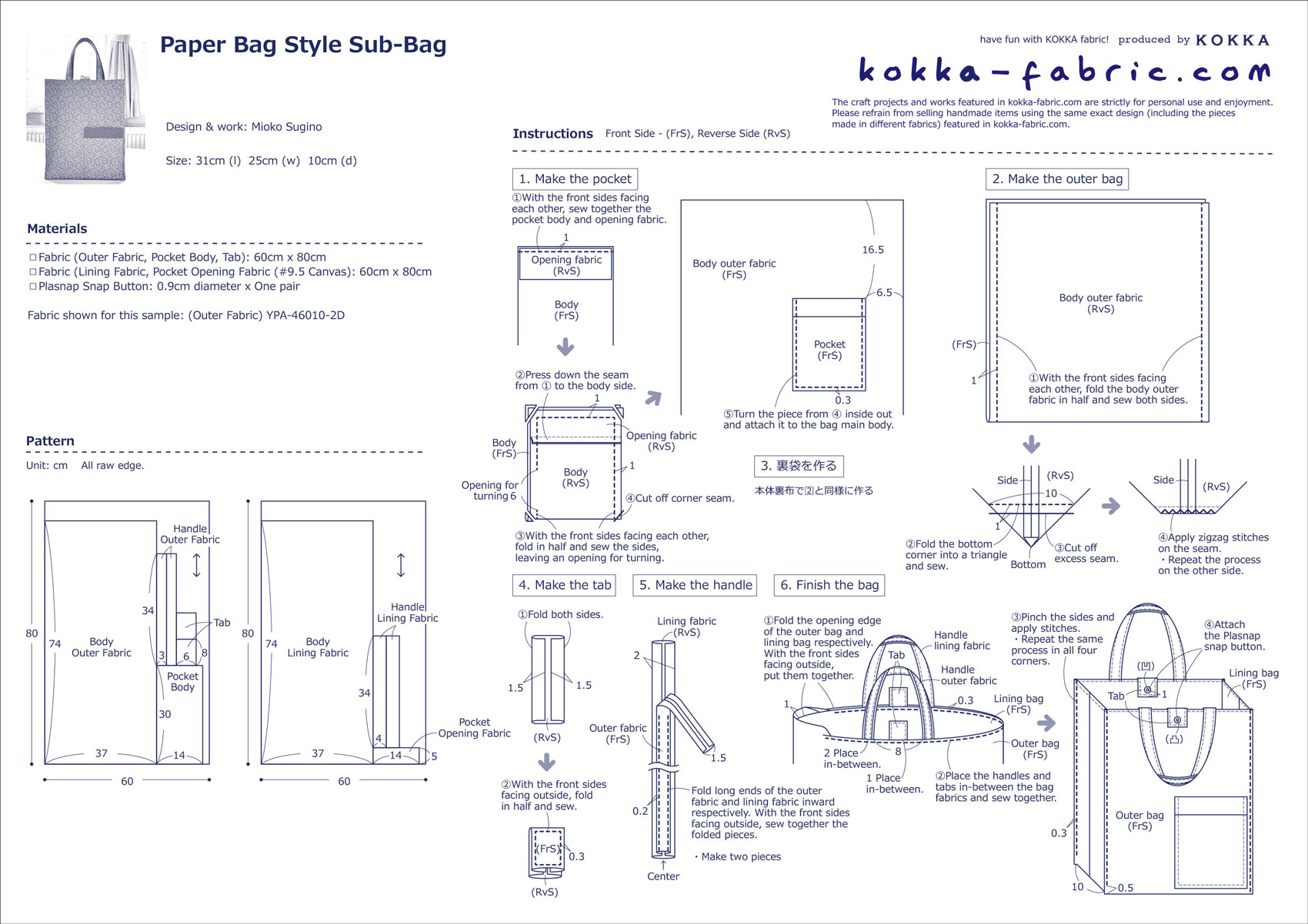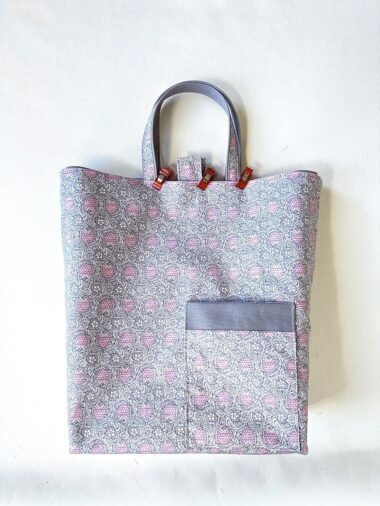 You want to go out only with a small handbag, but you have documents to carry… This fabric bag in the style of a paper bag is perfect for such occasions. It is well-constructed and stands on its own, even with A4-size documents inside. The fabric used for this bag is from the “vintage komon” series. The tasteful small pattern goes well with elegant clothing. The 100% cotton sheeting is suitable for bag making.