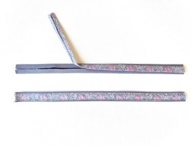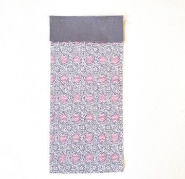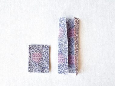 Fold both long ends of the tab fabric inward, then fold in half and sew. Make two pieces.