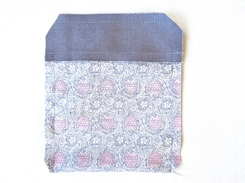 With the front sides facing each other, fold in half. Sew the sides, leaving an opening for turning on one side. Cut off the corner seam. Turn it inside out and align the shape.