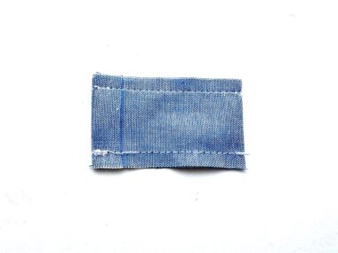 Fold the end of the zipper edge fabric for 1cm. With the front sides facing each other, fold in half and sew at 0.5cm. Turn it inside out.