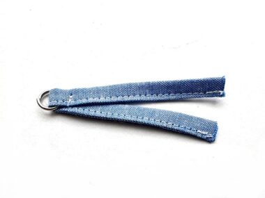 Fold the zipper decorative fabric in four and sew. Insert through the O ring and baste.