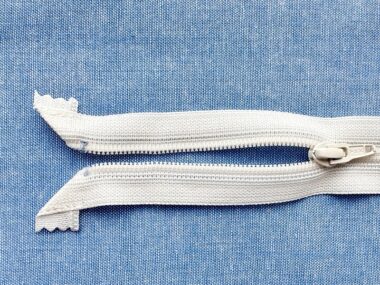 Insert zipper edge fabric through the loop. Fold and sew to secure.