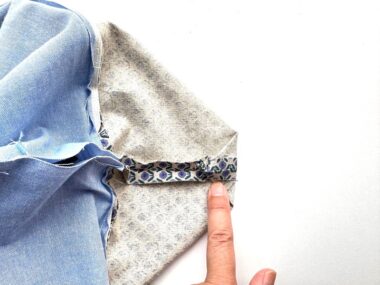 Sew the other side. Make the gusset on the remaining bottom corners. Cut off the excess and apply zigzag stitches.
