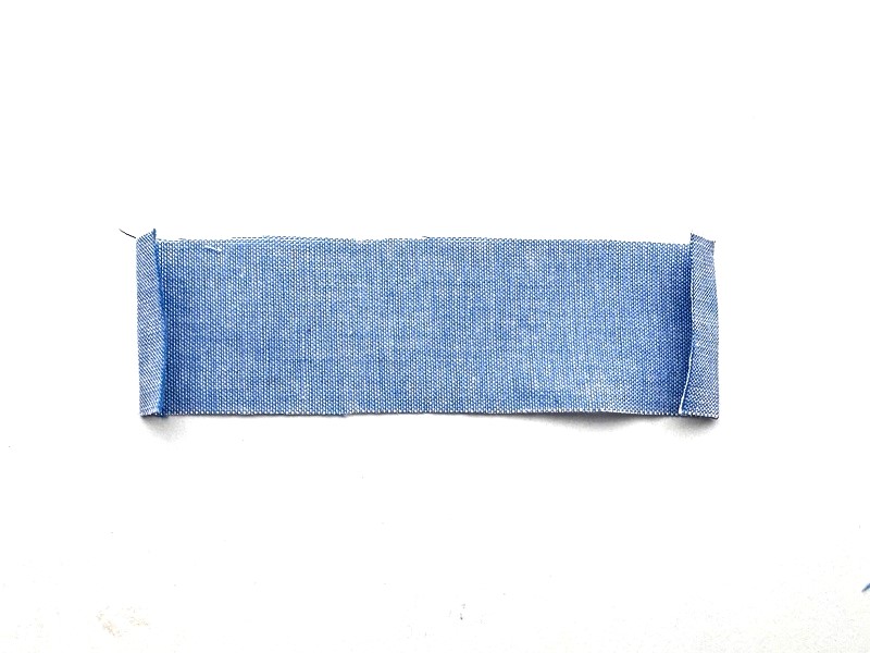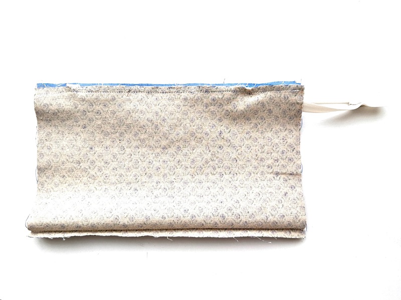 Fold the end of the zipper edge fabric for 1cm. With the front sides facing each other, fold in half and sew at 0.5cm. Turn it inside out.
