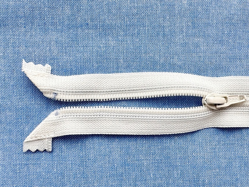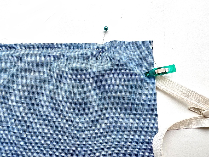 Insert zipper edge fabric through the loop. Fold and sew to secure.