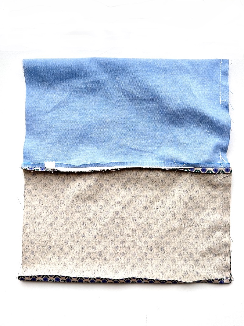 With the front sides facing each other, sew together the outer fabrics at the bottom. Press the seam open.