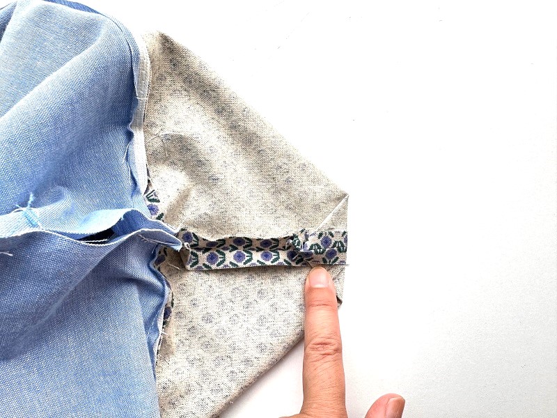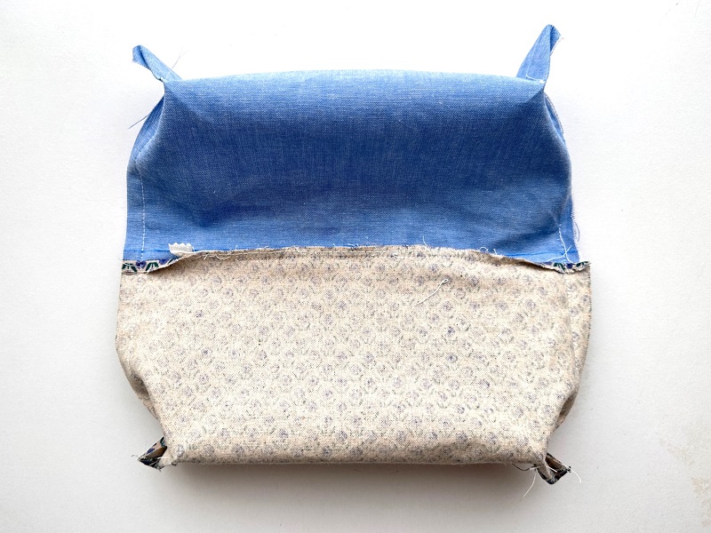 When applying the top stitches, fold the corners of the outer and lining fabrics tightly together. If you miss the lining fabric, it will look slightly sloppy when the bag is opened. So please be careful when stitching.