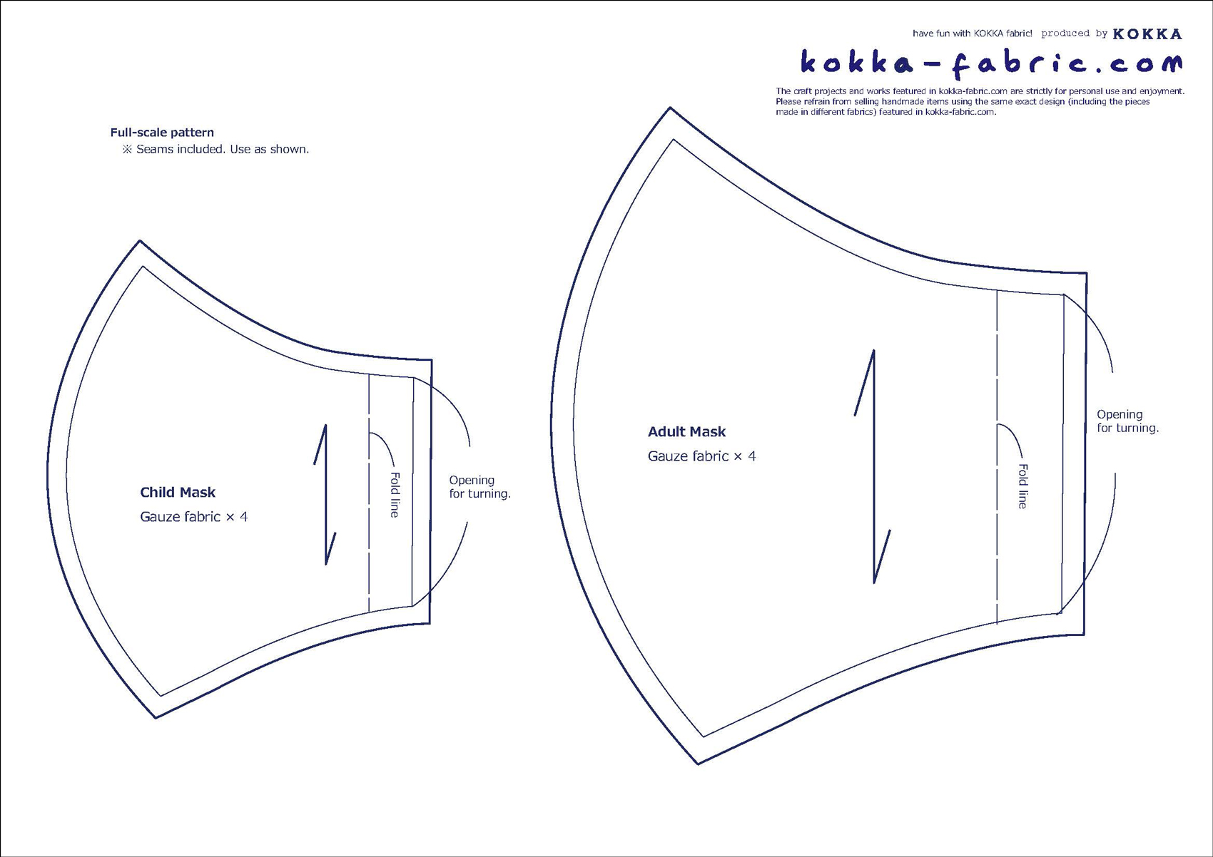 Today’s project is a mask made with a double gauze fabric in a popular French bulldog motif. Since the shape is three-dimensional, it fits comfortably and well to your face. On the instruction sheet, there are two patterns for adult and child. Why not make matching masks for a parent and child?
