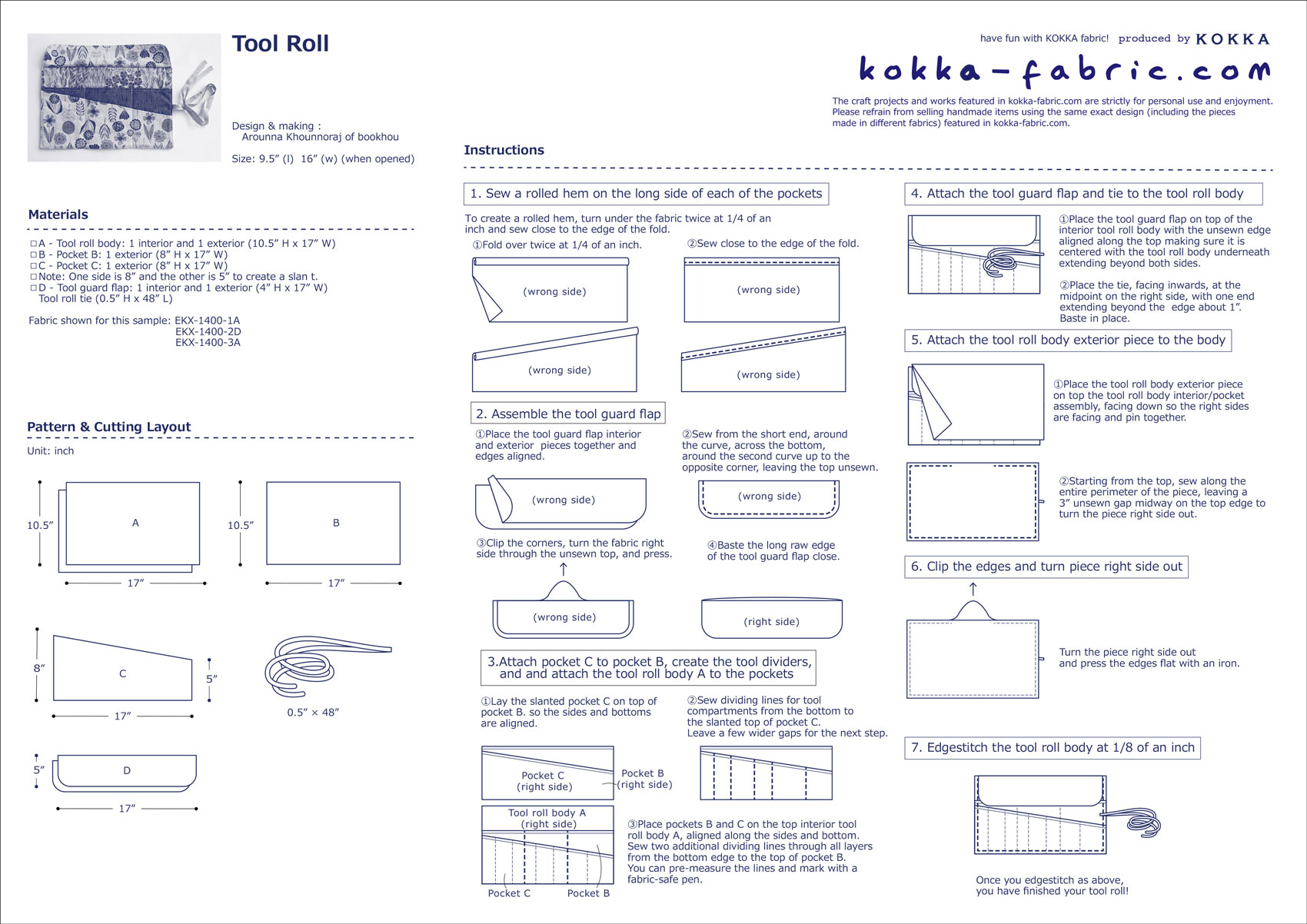 The Tool Roll allows you to organize your utensils for both work and hobby its numerous pockets for easy storage.