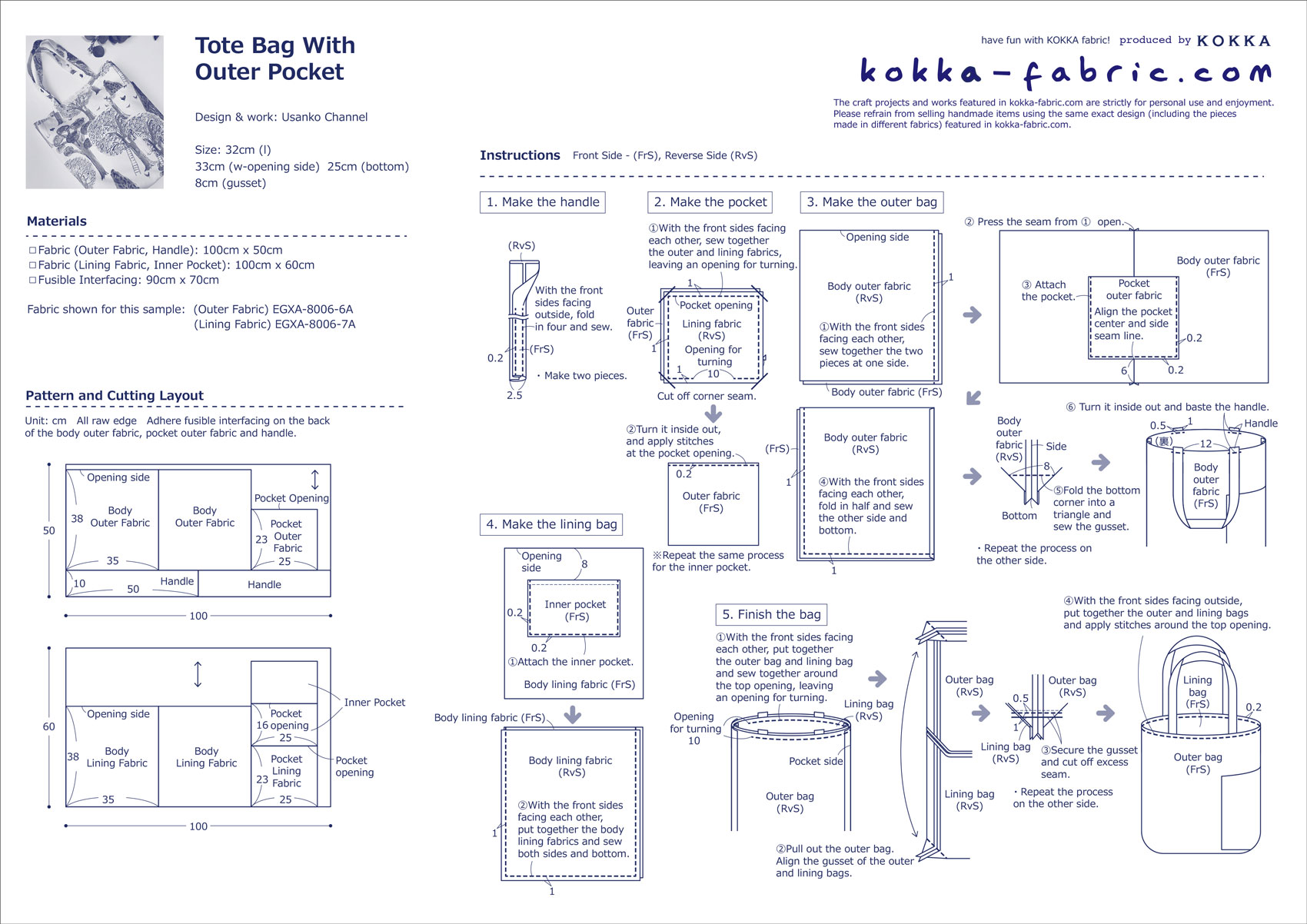 - Fabric (Outer Fabric, Handle): 100cm x 50cm