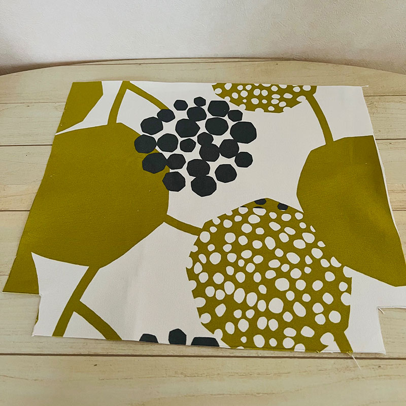 Cut the fabrics according to the measurement. The picture shows the outer fabric (33cmx40cm) cut with corners cropped in 4cm square.