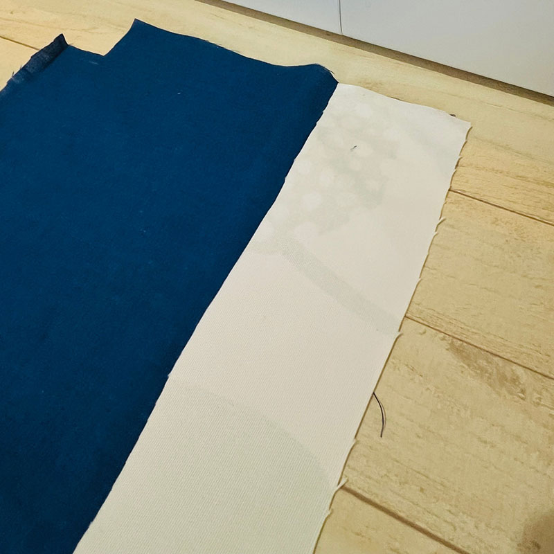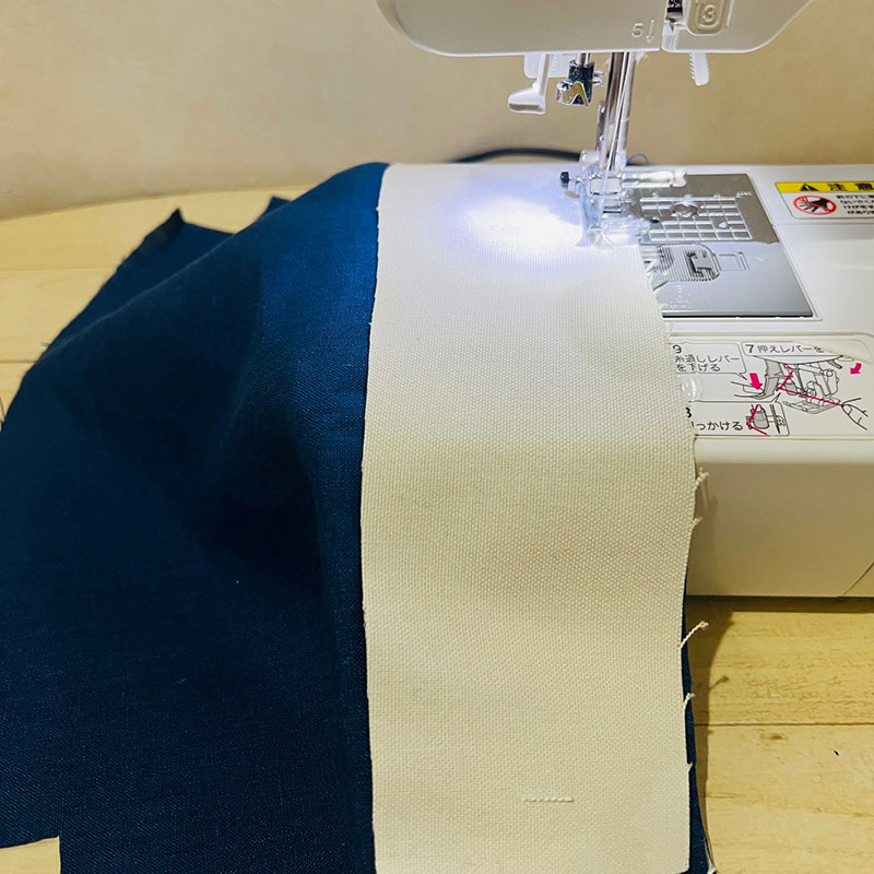 Make the lining bag. With the front sides facing each other, put together the lining fabric (27x40cm) and facing (8x40cm) prior to sewing.