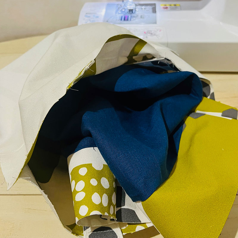 With the front sides facing each other, insert the lining bag (with facing) into the outer bag.