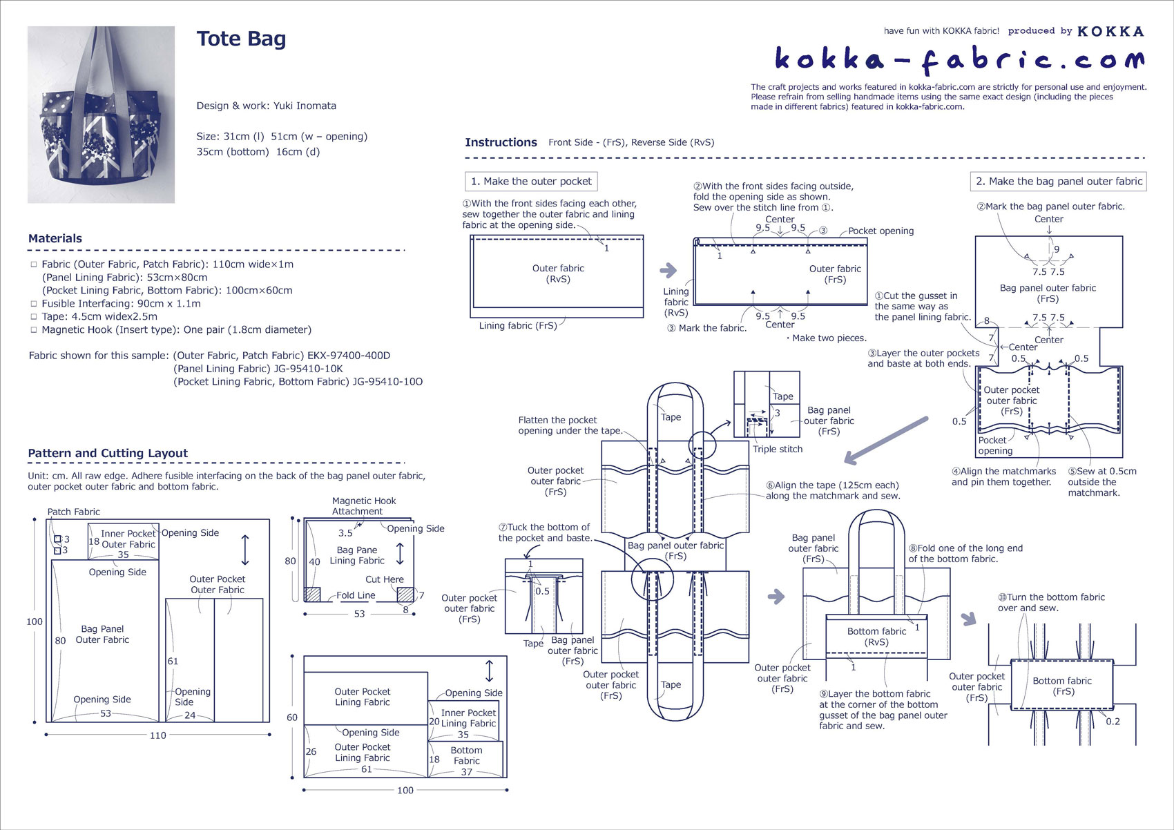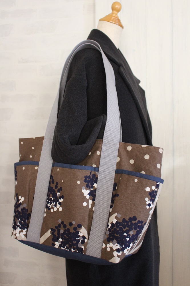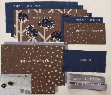 This time, since the article is published in winter, I dared to match it with a seasonal brown color from the selection of kokka’s fabric, which is usually characterized by its pop and bright patterns. This is a large open tote that is convenient for shopping, traveling, and family visits. It also has a lot of outside pockets for sorting small items when you have more luggage on your trip. Of course, it also works great as an eco-friendly bag! I hope you will find it useful for different purposes.