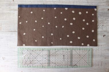 With the front sides facing each other, overlap the bottom fabric with the bottom of the outer pocket, and sew at 1cm. Iron the seam allowance on the other side to make a crease.