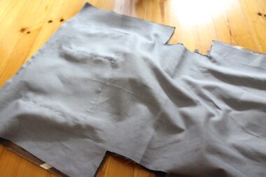 Baste both sides at 5mm. Baste the matchmark at 5mm away from the marked area to the outside (the blue arrow is the location of the tuck).