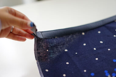 With the front sides facing each other, put together the opening fabric and lining bag with the outer bag, and sew all the way around at the top.