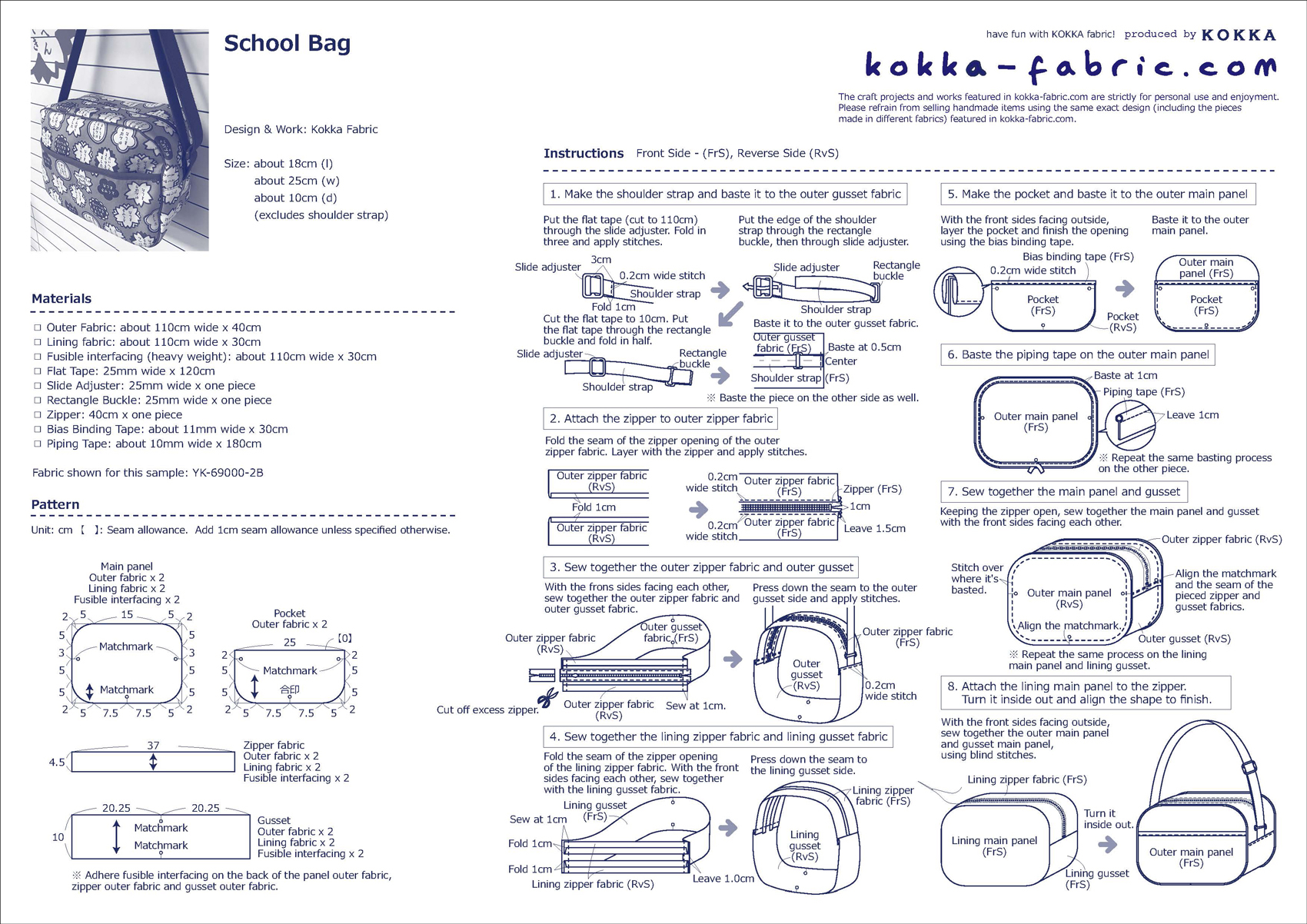 An ideal fabric for a school bag is introduced from the perfectly named “Yokudekimashita (Well Done)” series. The plum and cherry blossoms motif is filled with wording like “Yokudekimashita (Well Done)” and “Ganbarimashita (You Did It)”! With a zipper, the contents are secure inside. Plus a handy outer pocket and adjustable shoulder strap complete all the convenient functions. It is a perfect fit for a school bag.