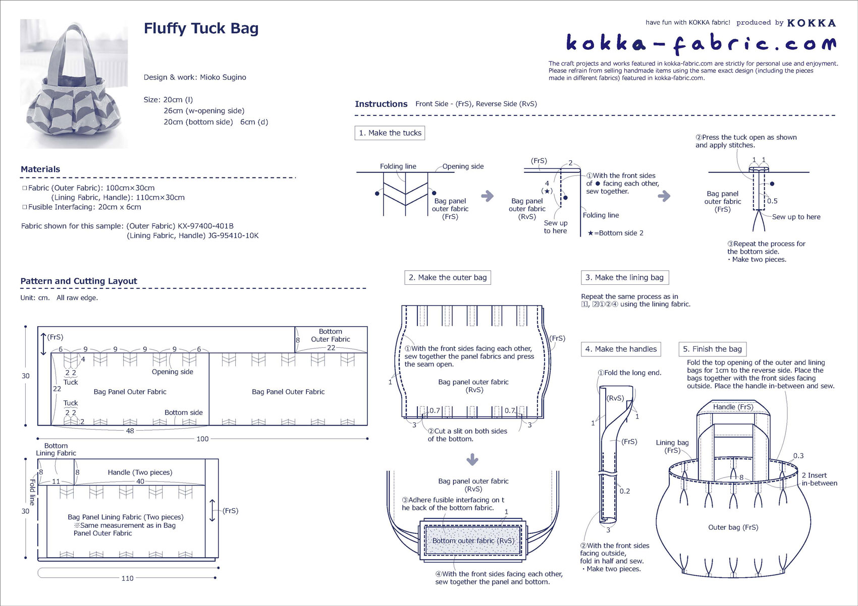 KF: Thank you very much, Mioko! Here are sewing instructions along with step by step photos from her. Enjoy crafting!