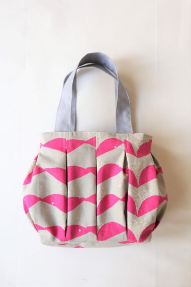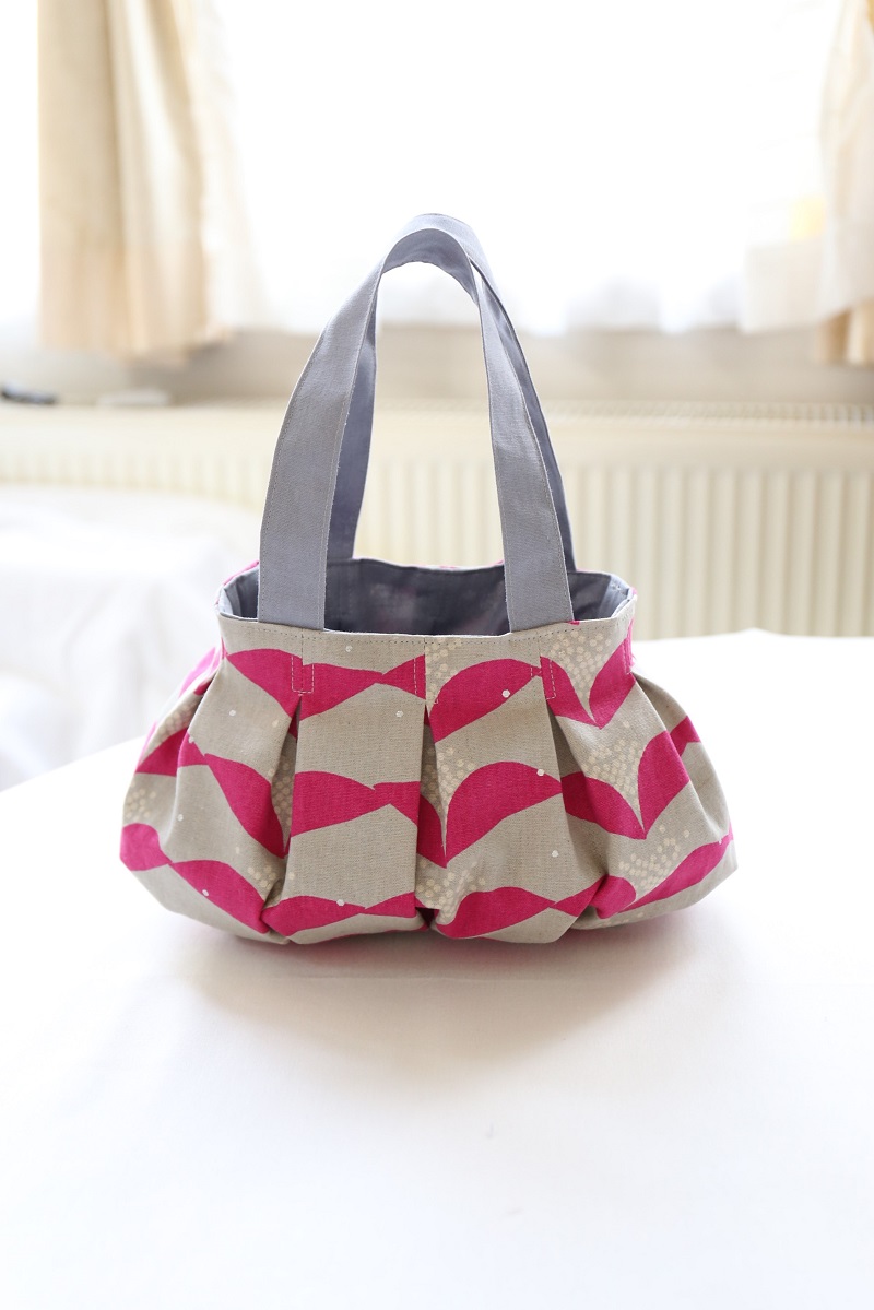The design is such that you can create a round shape without a pattern. By adding lots of tucks, the bag becomes fuller and rounder. The circular style of the bag allows it to hold a lot of things while keeping its shape.