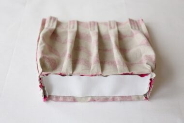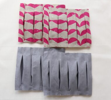 It is important to measure and sew the tucked areas of the outer and lining fabrics to make sure they are the correct size. If there is any discrepancy when sewing together with the bottom fabric or when matching the openings of the outer and lining fabrics, it might become a problem. Once you finish working on the tucks, please make sure that they are in alignmen