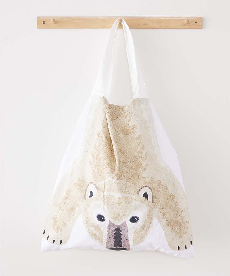 This bag has a partition on the inside, allowing you to carry your belongings in two separate places. The featured fabric is [Animals] from the “HOME DECO” series, which is based on the concept of “making your room decorating more fun.” A 110cm x 80cm panel fabric, with the animals spread across the entire width, is quite impactful! This material is also great for making baby mats and throw pillow covers. 100% cotton sheeting.