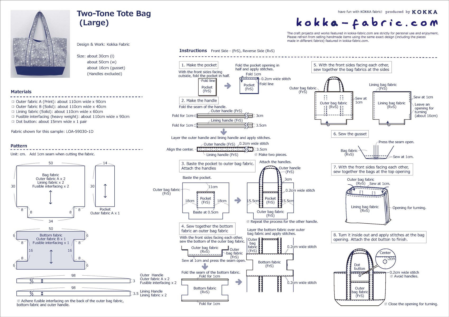 Two-Tone Tote Bag – Sewing Instructions