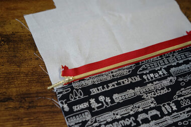 Prepare the materials – Outer fabric (with fusible interfacing adhered on the back) x 2 , Lining fabric x 2 and zipper x 1.