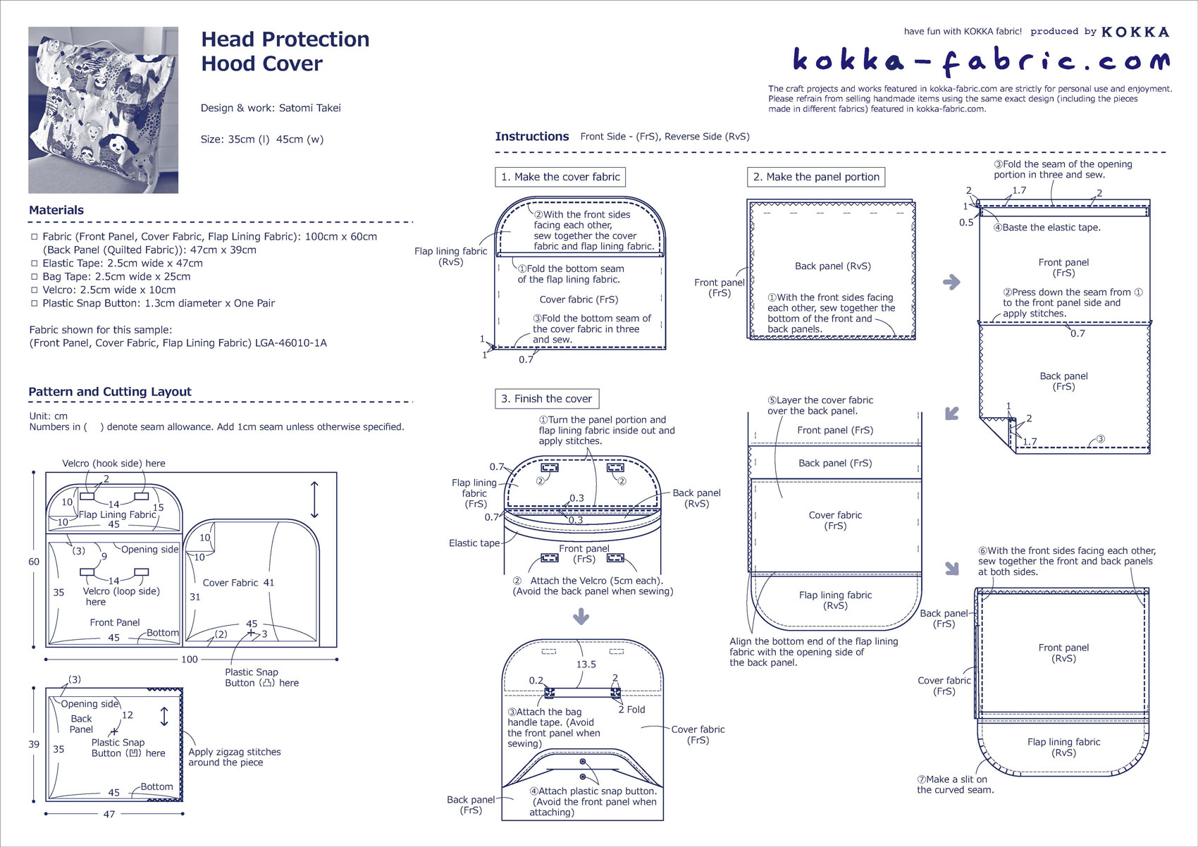 The head protection hood itself is like a cushion, so if you are concerned about the thickness, you can make the cover entirely out of regular fabric instead of quilted fabric.