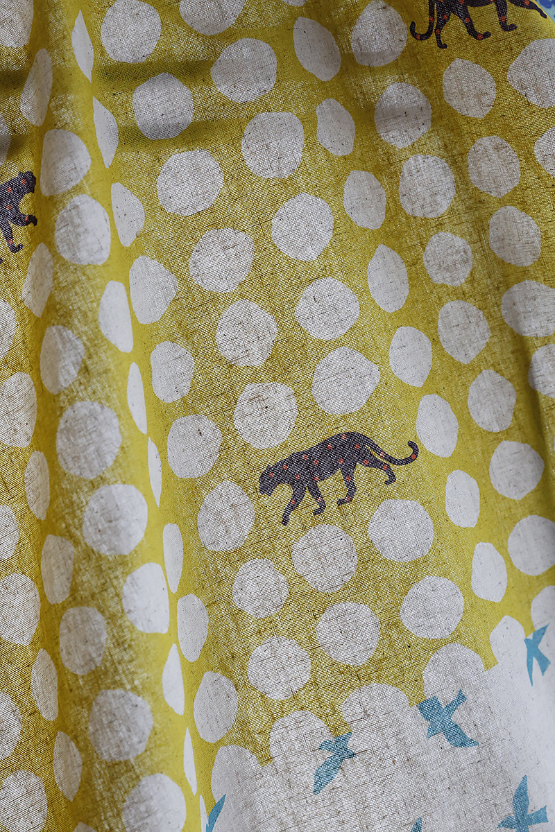 This fabric features animals living in a sea of dots and geometric patterns. Random placement of the block like patterns will allow you to enjoy every bit of this fabric. What makes this print more interesting is that the different color combinations transform its image.